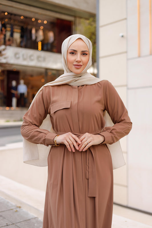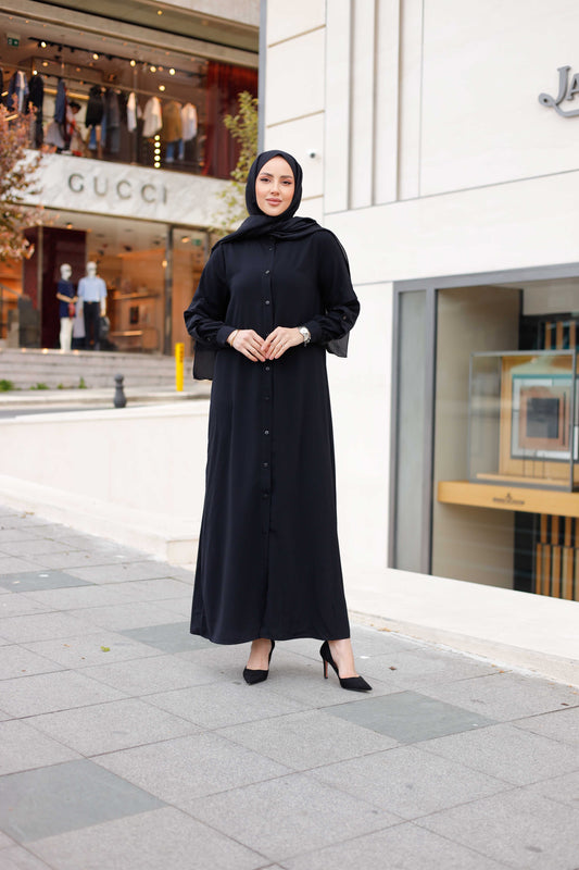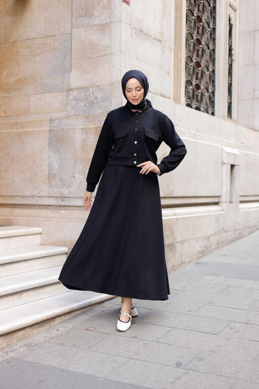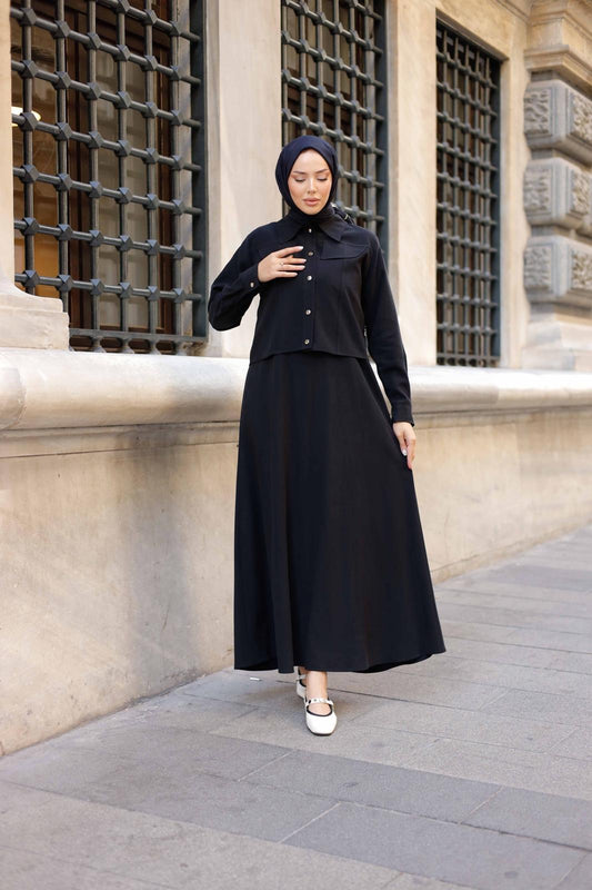 Siparişim tam istediğim gibi geldi! İkili takımın rengi ve dokusu harika, özellikle gün boyu rahatlık sağlıyor. Ferace ve abaya koleksiyonunuzdaki çeşitlilik de mükemmel. Alışverişimden çok memnun kaldım!""Bu markayı arka