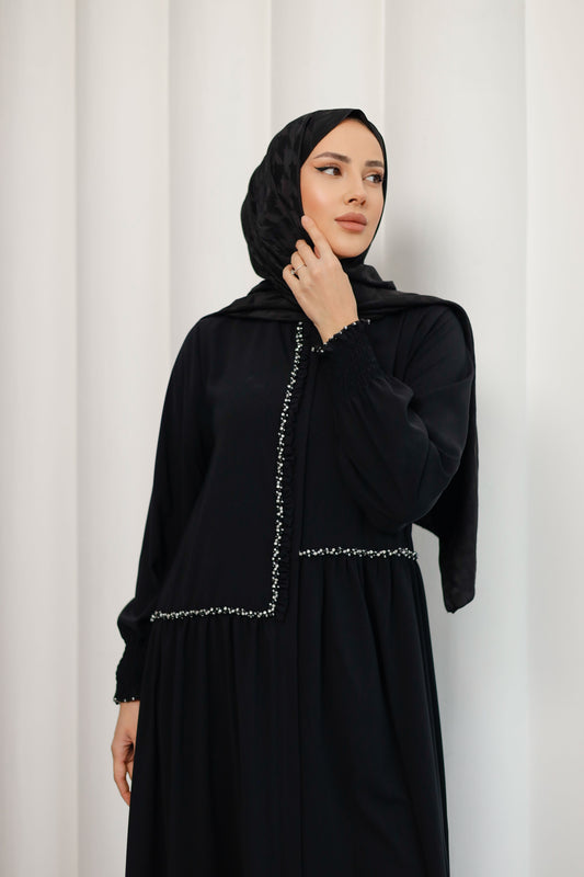Kristal Boncuk İşlemeli İthal Medine İpeği Ferace