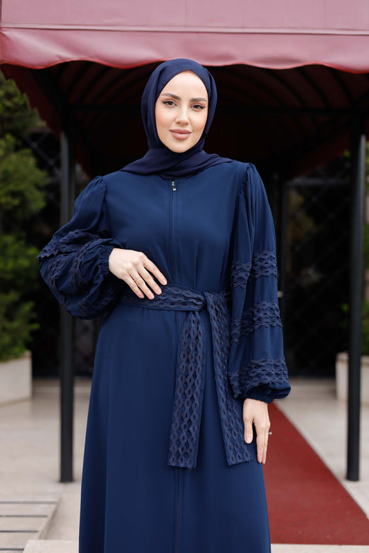 İthal Medine İpeği Biye Detaylı Oversize Ferace – Siyah & Lacivert | 38-46 Beden