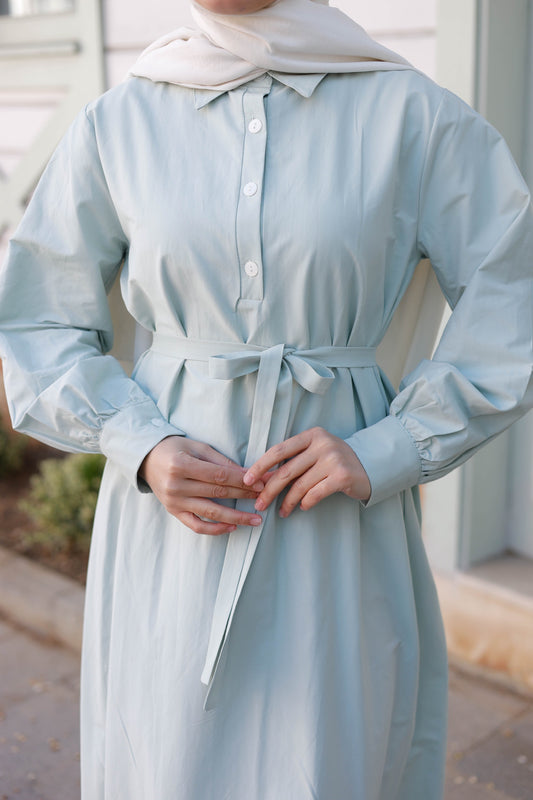 Kuşaklı Düğmeli Yüzde Yüz Pamuk Elbise – Bebe Mavisi, Siyah, Mint, Camel, Lacivert | Nueny Prive
