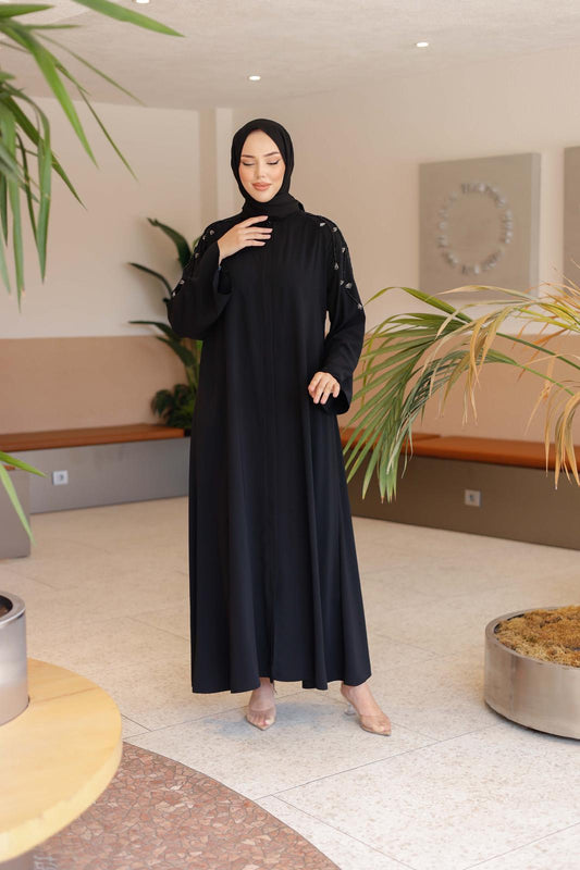 Kristal Boncuk İşlemeli İthal Medine İpeği Ferace