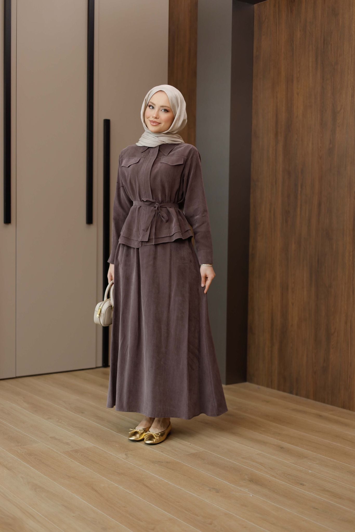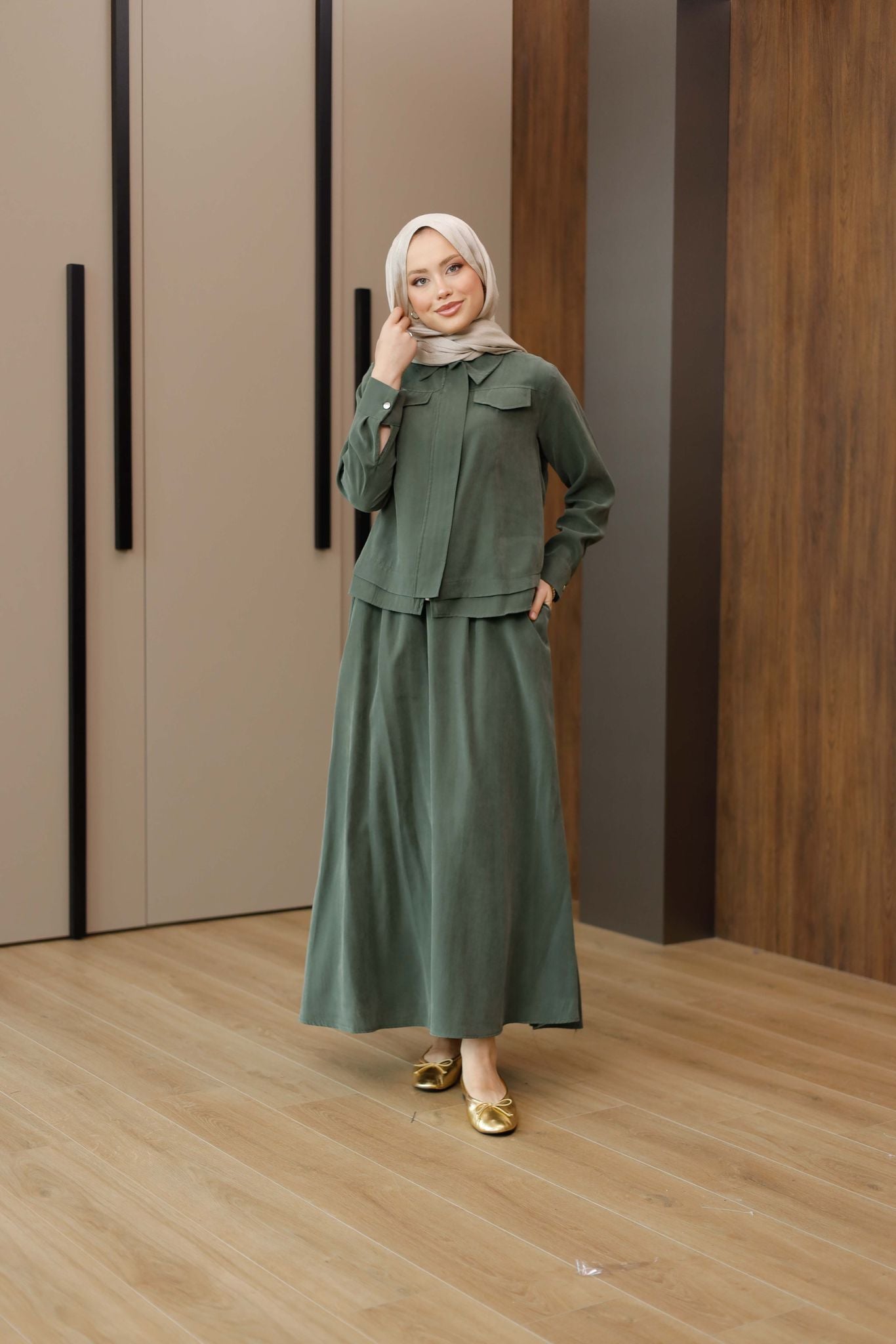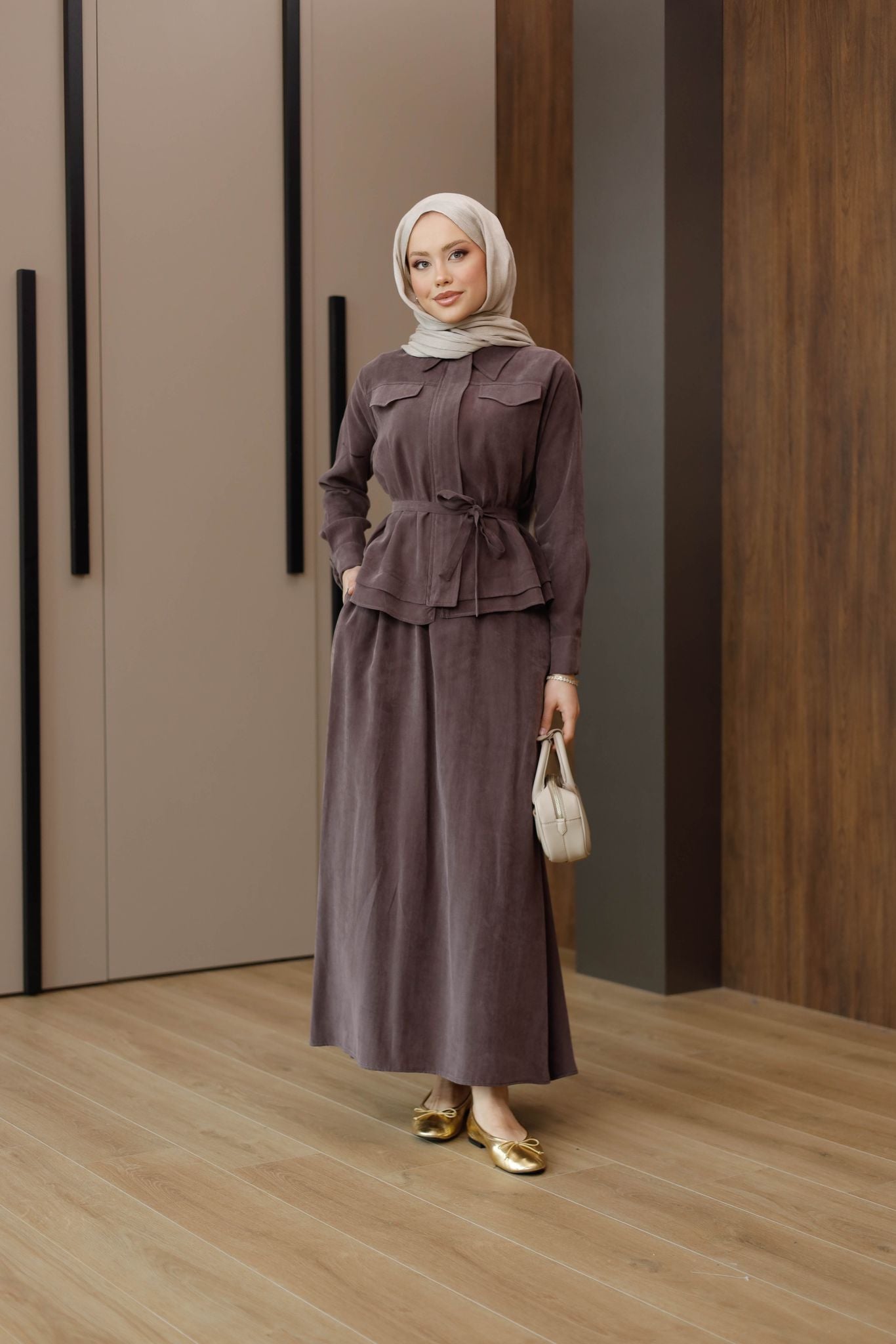 Zara Kupra Kumaş Etekli Takım – Zarif ve Konforlu Şıklık