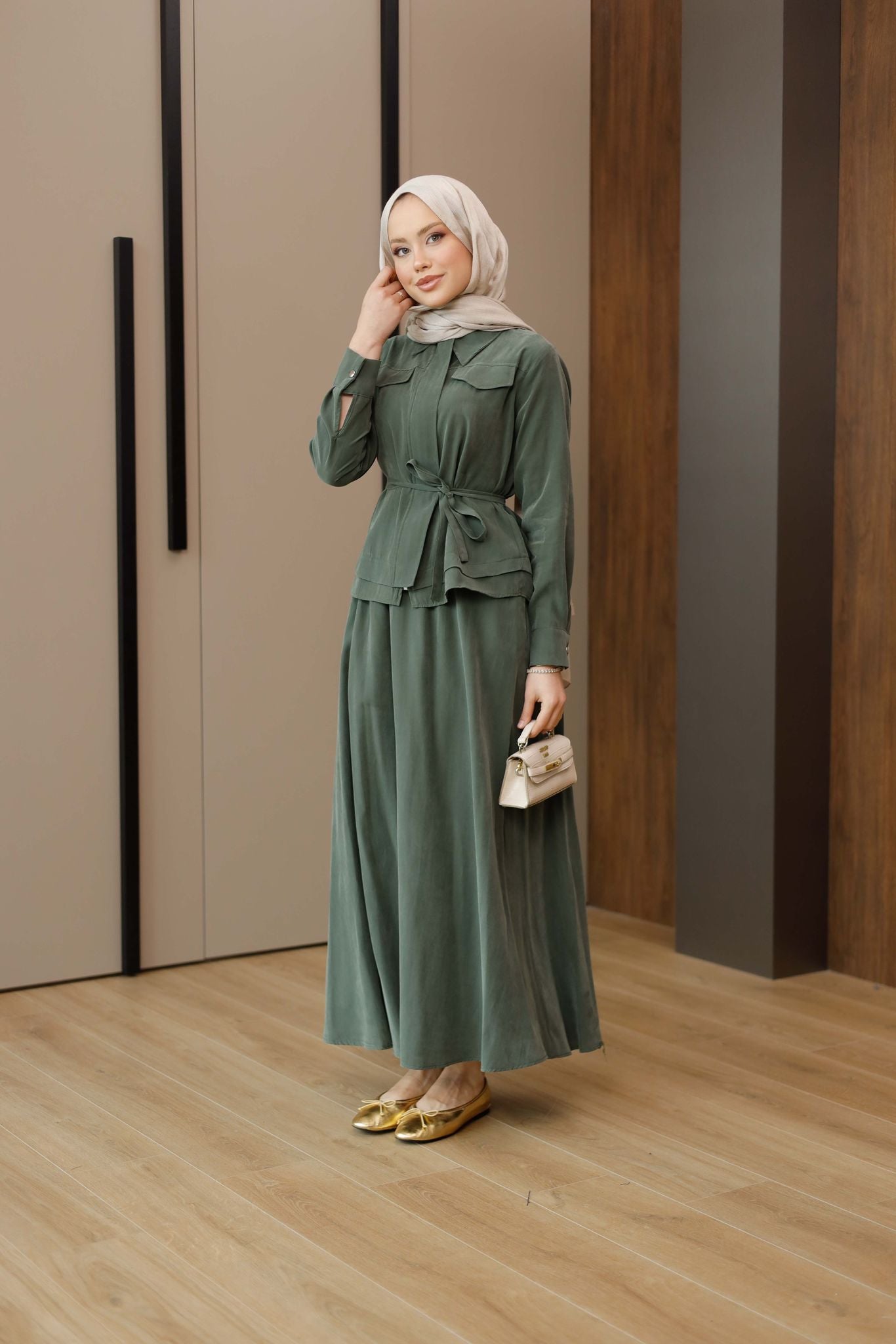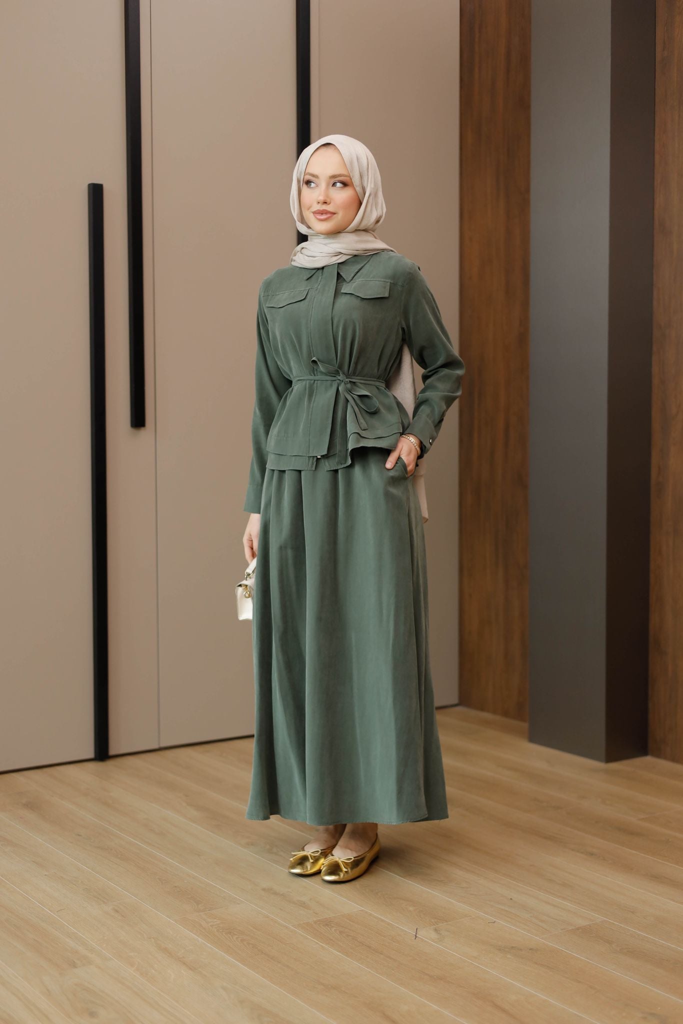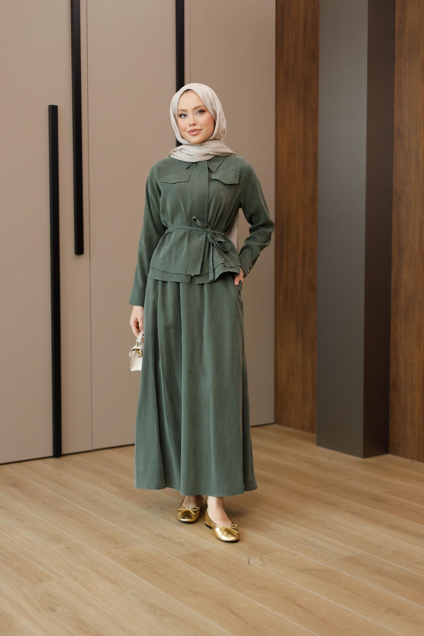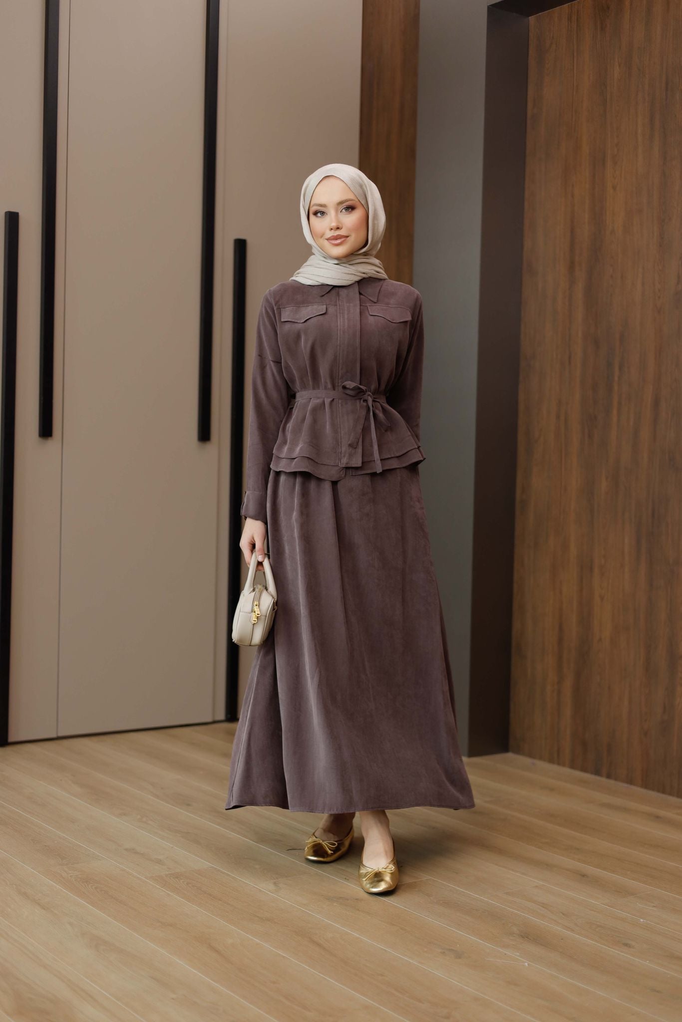 Zara Kupra Kumaş Etekli Takım – Zarif ve Konforlu Şıklık