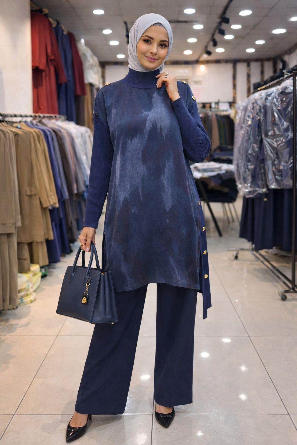 MERSERİZE DÜĞMELİ BATİK DESEN KUPRA TAKIM