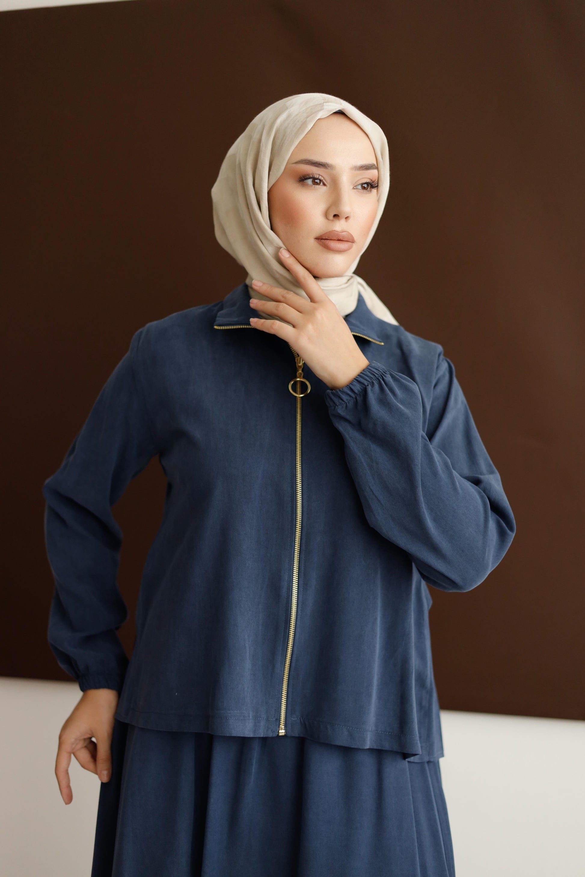 Cupra kumaşın ipeksi dokusu sayesinde gün boyu nefes alan, hafif ve konforlu bir şıklık sunar.